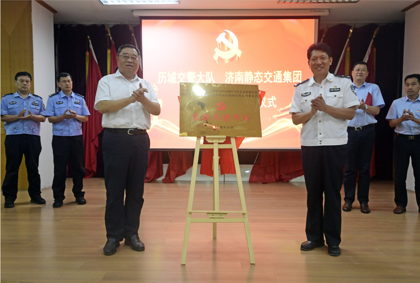 6月30日下午,濟南靜態(tài)交通集團與歷城交警大隊在“七一”前夕,隆重舉行了“牢記初心使命、共譜警企新篇”黨建共建簽約啟動暨共建基地揭牌儀式。